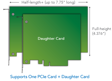 Шасси Sonnet Echo Express SE I имеет слот PCIe 3.0, поддерживающий установку одной платы половинной длины (до 19,6 см), полной высоты и одинарной или двойной ширины. Что такое"двойной ширины"? Некоторые специальные платы, как, например, RME HDSPe MADI FX, Blackmagic Design DeckLink 4K Extreme и Lynx AES16e 50, обладают дочерней платой, предоставляющей дополнительные коммутационные возможности для основной платы. При этом дочерняя плата требует дополнительного пространства без выделения отдельного